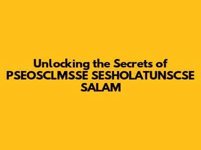 Unlocking The Secrets Of PSEOSCLMSSE SESHOLATUNSCSE SALAM