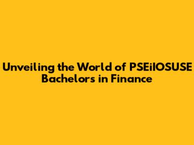 Unlocking Your Future: The PSEiIOSUSE Finance Bachelor's Degree