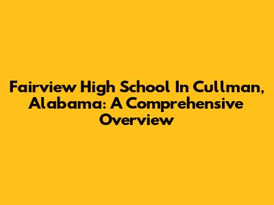Fairview High School In Cullman, Alabama: A Comprehensive Overview