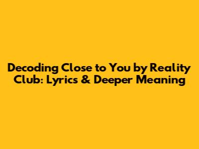Unpacking 'Close To You' By Reality Club: Lyrics & Meaning