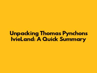 Unpacking Thomas Pynchon's IvieLand: A Quick Summary