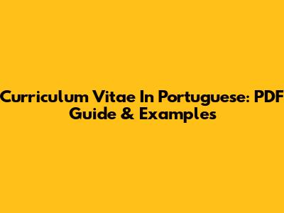 Curriculum Vitae In Portuguese: PDF Guide & Examples