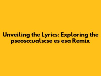 Decoding the 'pseosccualscse es esa Remix' Lyrics: A Deep Dive