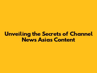 Unveiling The Secrets Of Channel News Asia's Content