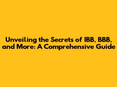 Decoding the Acronyms: IBB, BBB, and Beyond
