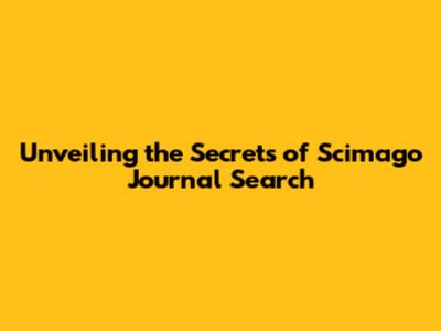 Unveiling The Secrets Of Scimago Journal Search