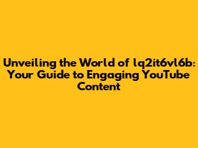 Hey everyone! Ever stumbled upon a YouTube channel that just clicks? Well, let's dive into the fascinating world of lq2it6vl6b, a channel that's been making waves in the online video content scene. We're going to explore what makes this YouTube user tick, the kind of videos they create, and why you might want to hit that subscribe button. This isn't just about watching videos; it's about joining a community, discovering new passions, and staying up-to-date with what's trending. So, grab your snacks, get comfy, and let's unravel the secrets of lq2it6vl6b!
