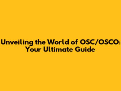 Decoding OSC/OSCO: What Does It All Mean?
