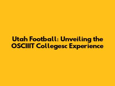 Utah Football: Unveiling The OSCIIIT Collegesc Experience