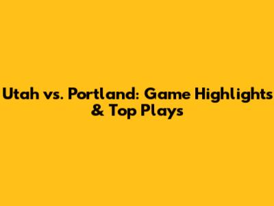 Utah Vs. Portland: Game Highlights & Top Plays