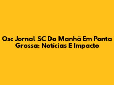 Osc Jornal SC Da Manhã Em Ponta Grossa: Notícias E Impacto