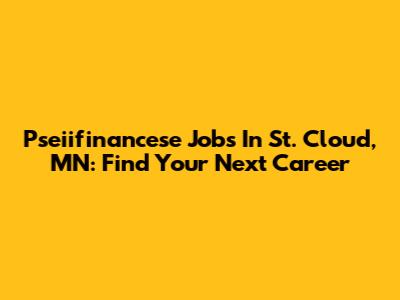 Pseiifinancese Jobs In St. Cloud, MN: Find Your Next Career
