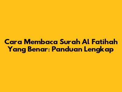 Cara Membaca Surah Al Fatihah Yang Benar: Panduan Lengkap