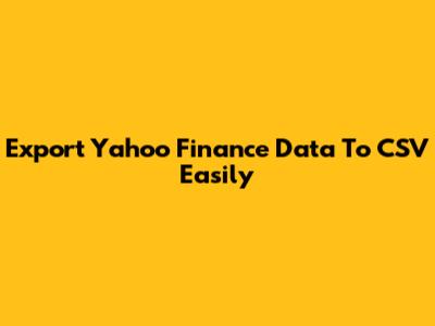 Export Yahoo Finance Data To CSV Easily