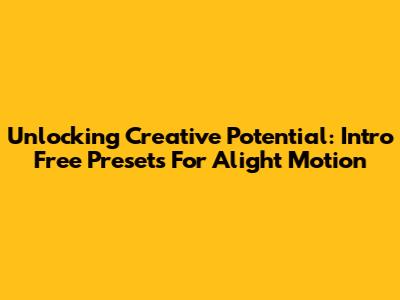 Unlocking Creative Potential: Intro Free Presets For Alight Motion