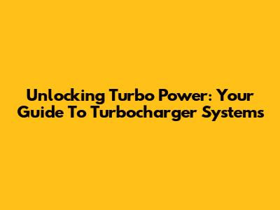 Unlocking Turbo Power: Your Guide To Turbocharger Systems