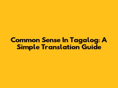 Common Sense In Tagalog: A Simple Translation Guide