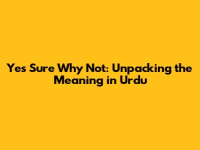 Yes Sure Why Not: Understanding Its Meaning In Urdu