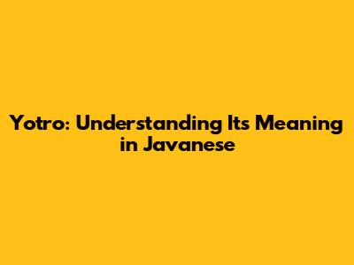 Hey guys! Ever stumbled upon the word "yotro" and scratched your head wondering what it means? Especially if you're diving into the rich tapestry of Javanese language and culture, knowing the meaning of yotro is super helpful. Let's break it down, shall we? This comprehensive guide will explore the meaning of yotro in Javanese, providing context, examples, and a deeper understanding of its usage. Understanding yotro not only enriches your vocabulary but also offers insights into Javanese cultural values and communication styles. So, whether you're a language enthusiast, a student of Javanese culture, or simply curious, this article is tailored to provide you with a clear and engaging explanation of what yotro truly means. By the end of this exploration, you'll be well-equipped to use and understand yotro in various contexts, enhancing your appreciation for the Javanese language.