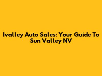 Ivalley Auto Sales: Your Guide To Sun Valley NV