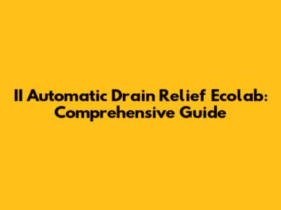 II Automatic Drain Relief Ecolab: Comprehensive Guide