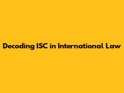 Decoding ISC In International Law