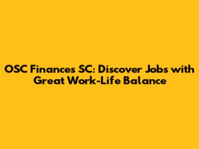 OSC Finances SC: Discover Jobs With Great Work-Life Balance