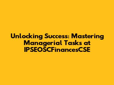 Unlocking Success: Mastering Managerial Tasks At IPSEOSCFinancesCSE